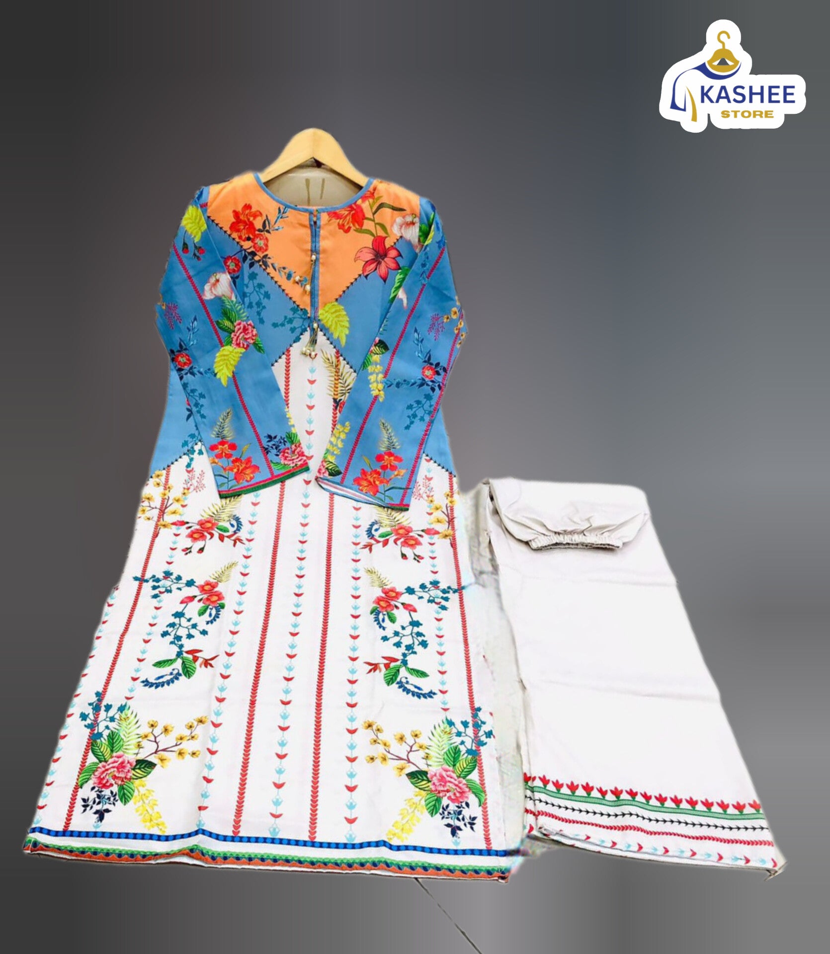 2Pc Swiss Lawn Outfit | Shirt & Bell Bottom Trouser