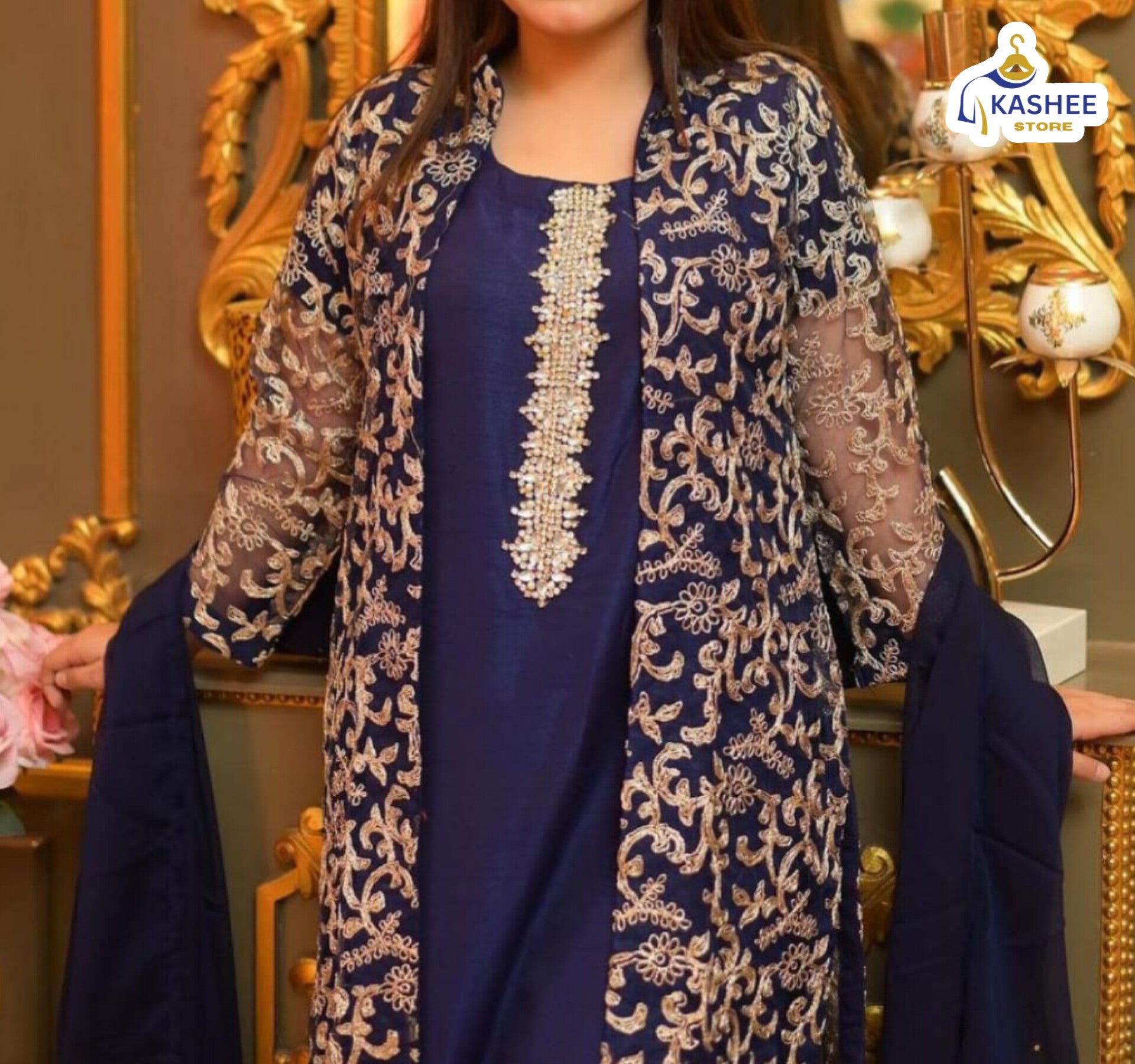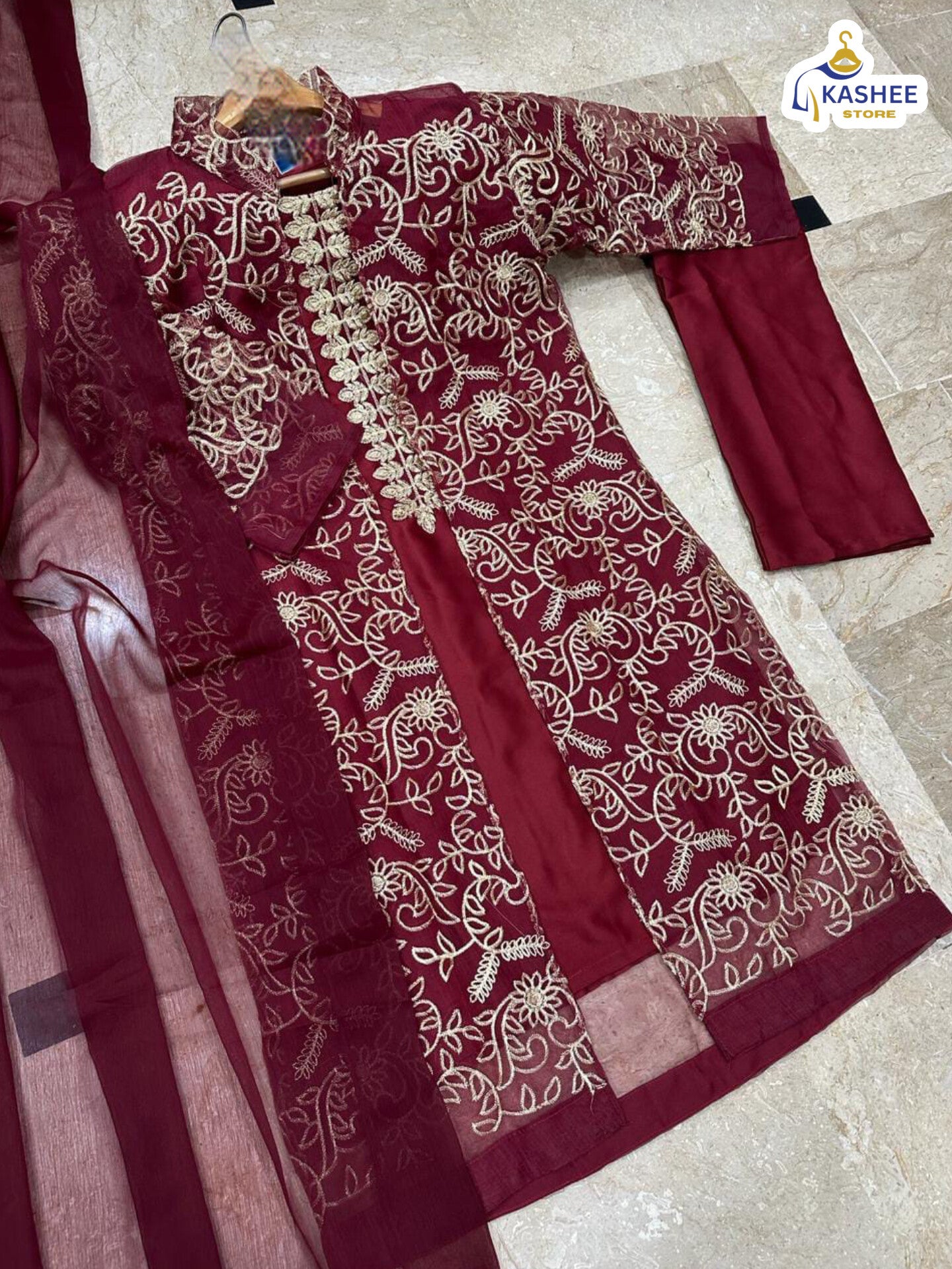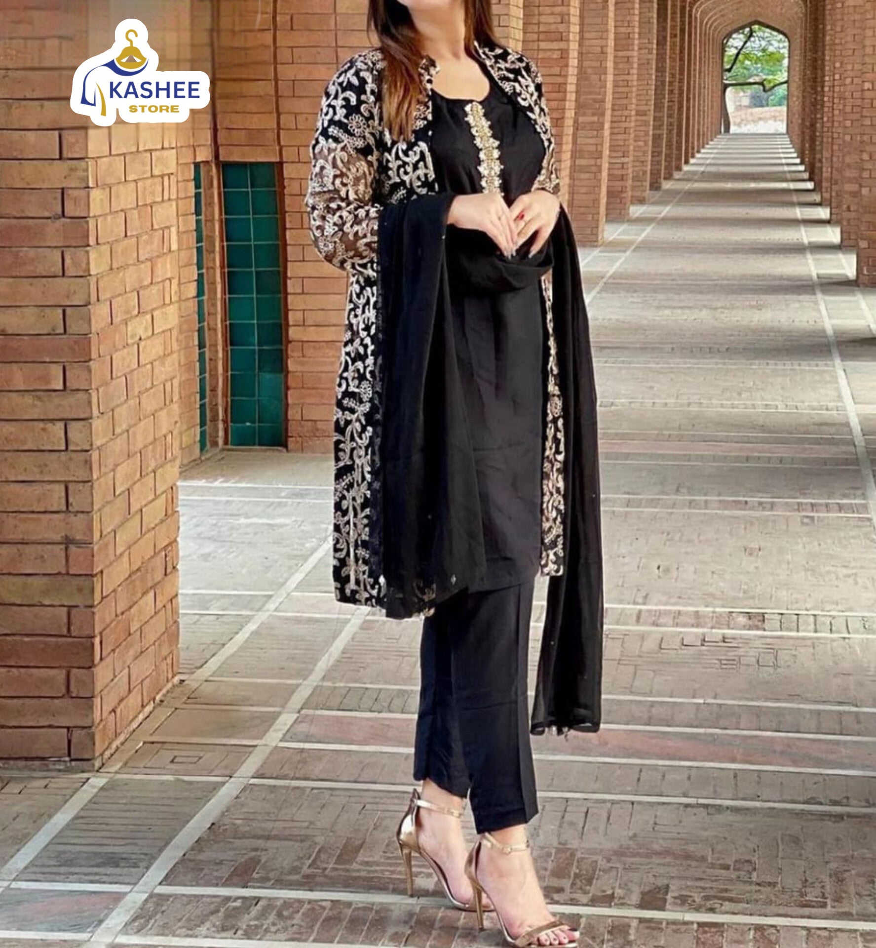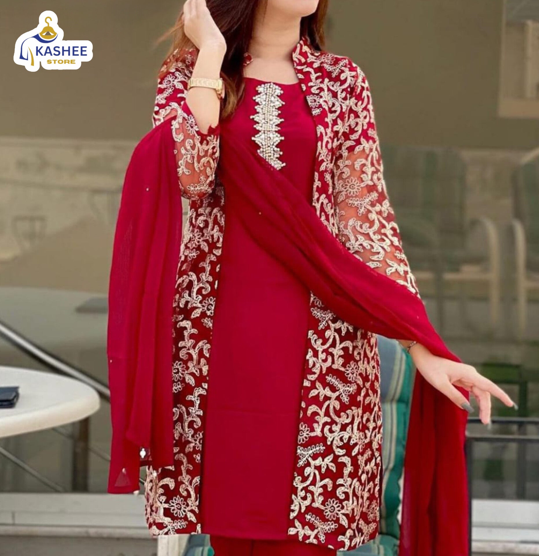 . "4Pc Embroidered Organza Gown Set | Inner, Trouser & Dupatta"
