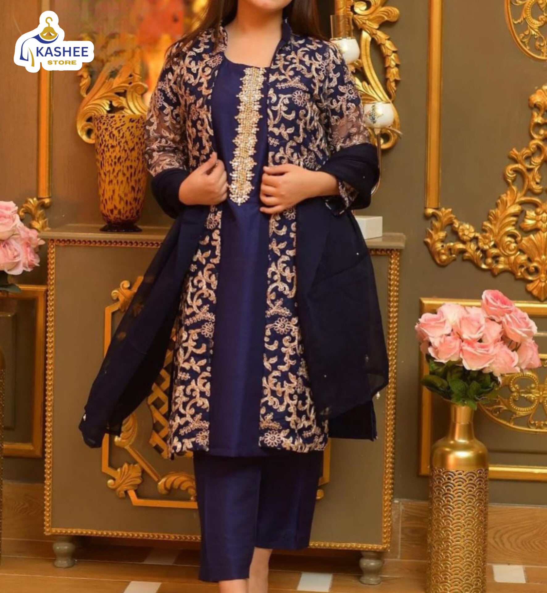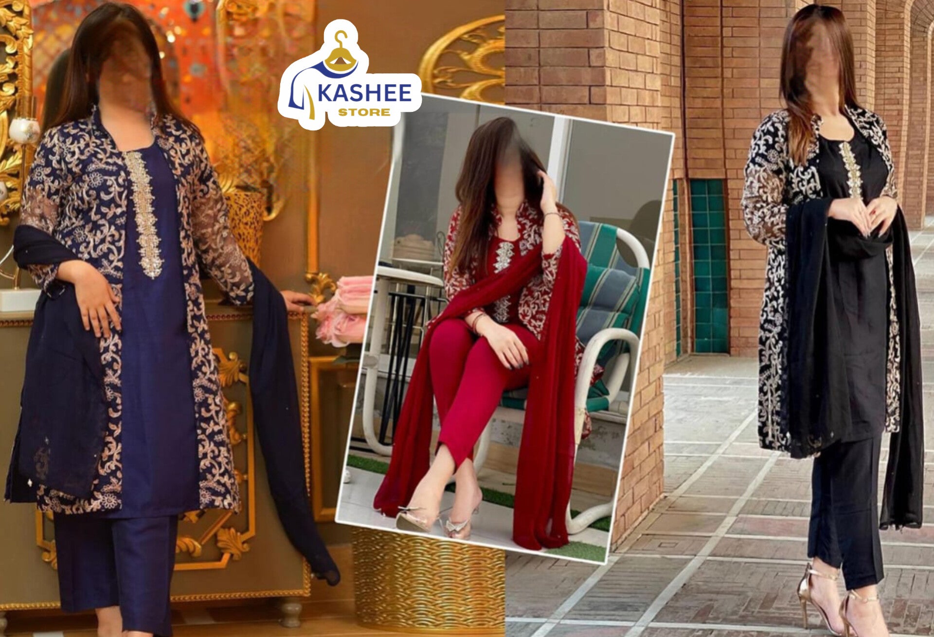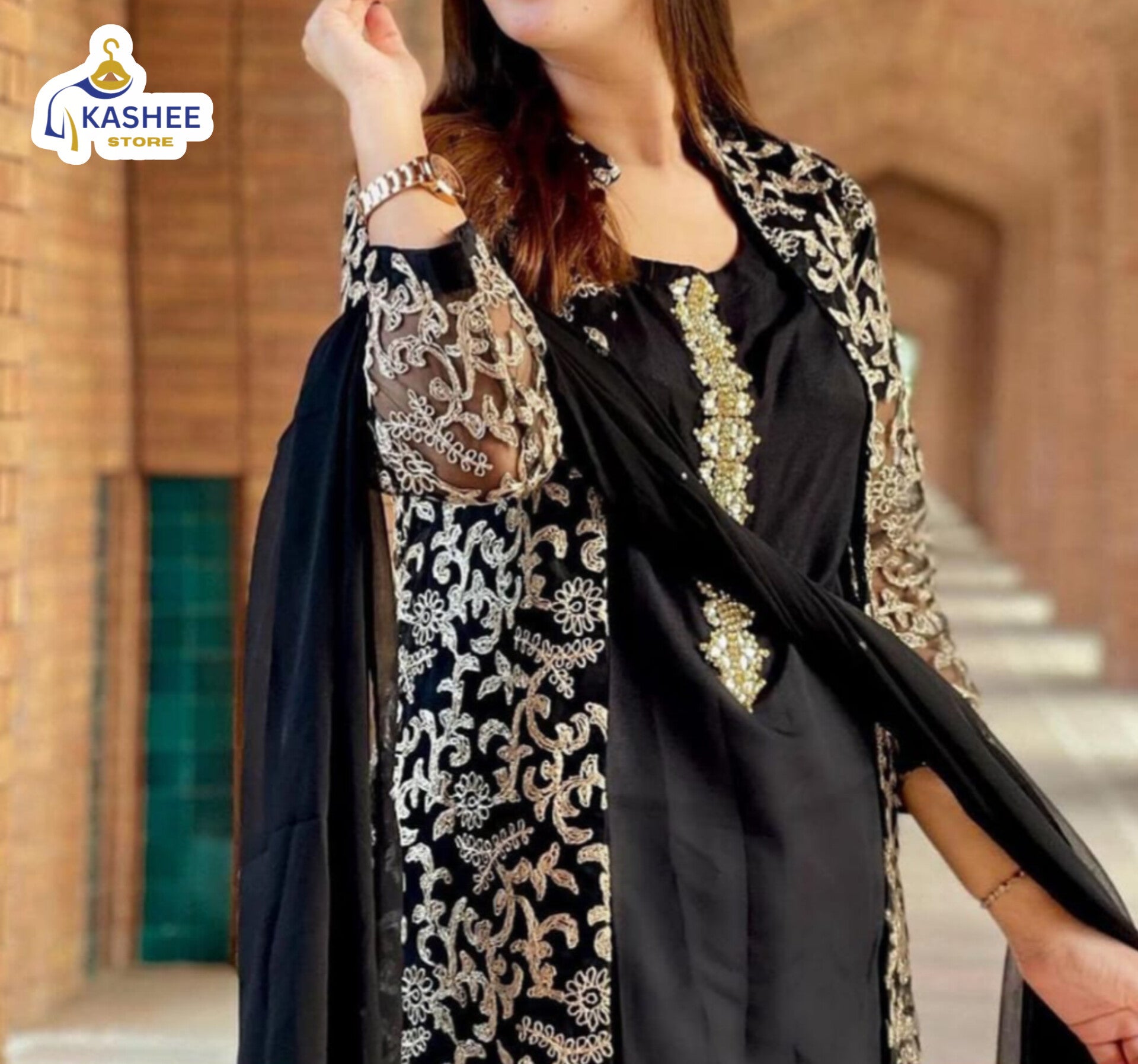 . "4Pc Embroidered Organza Gown Set | Inner, Trouser & Dupatta"