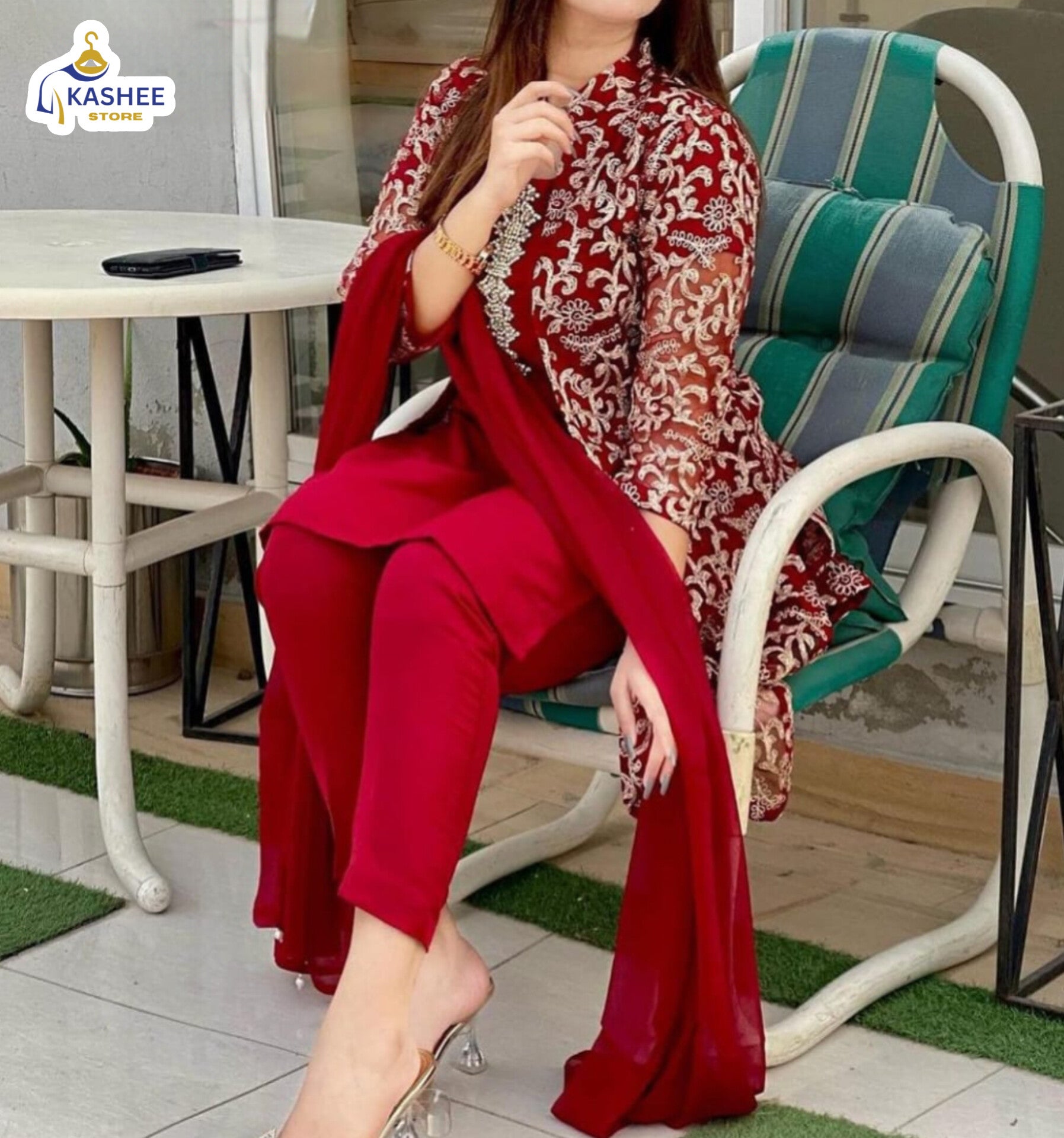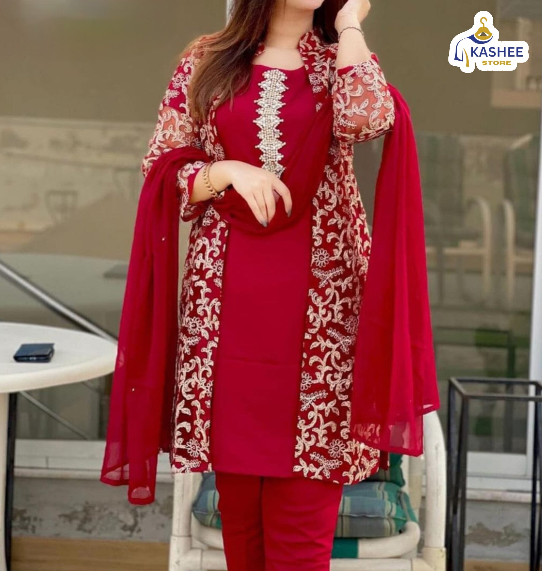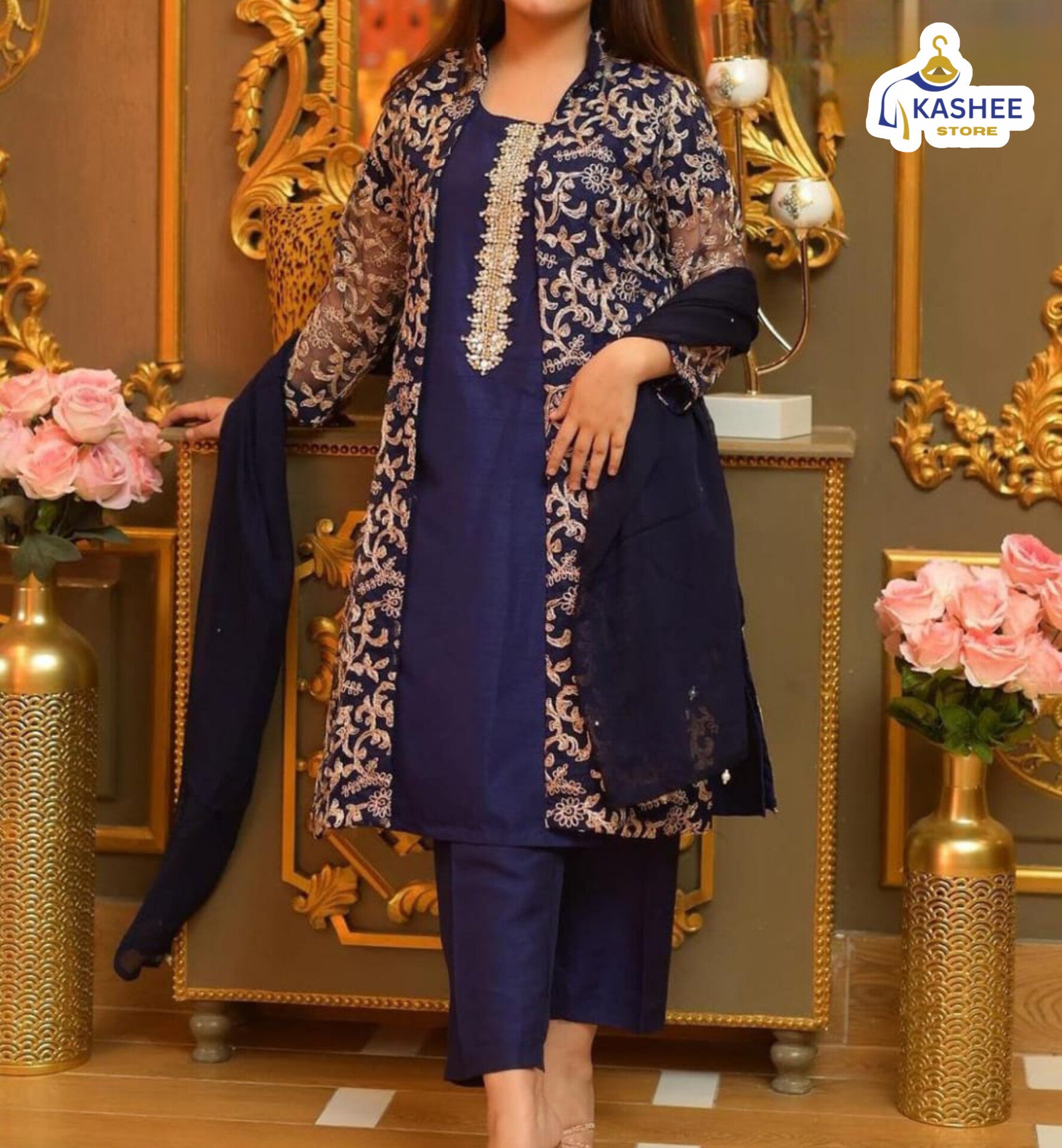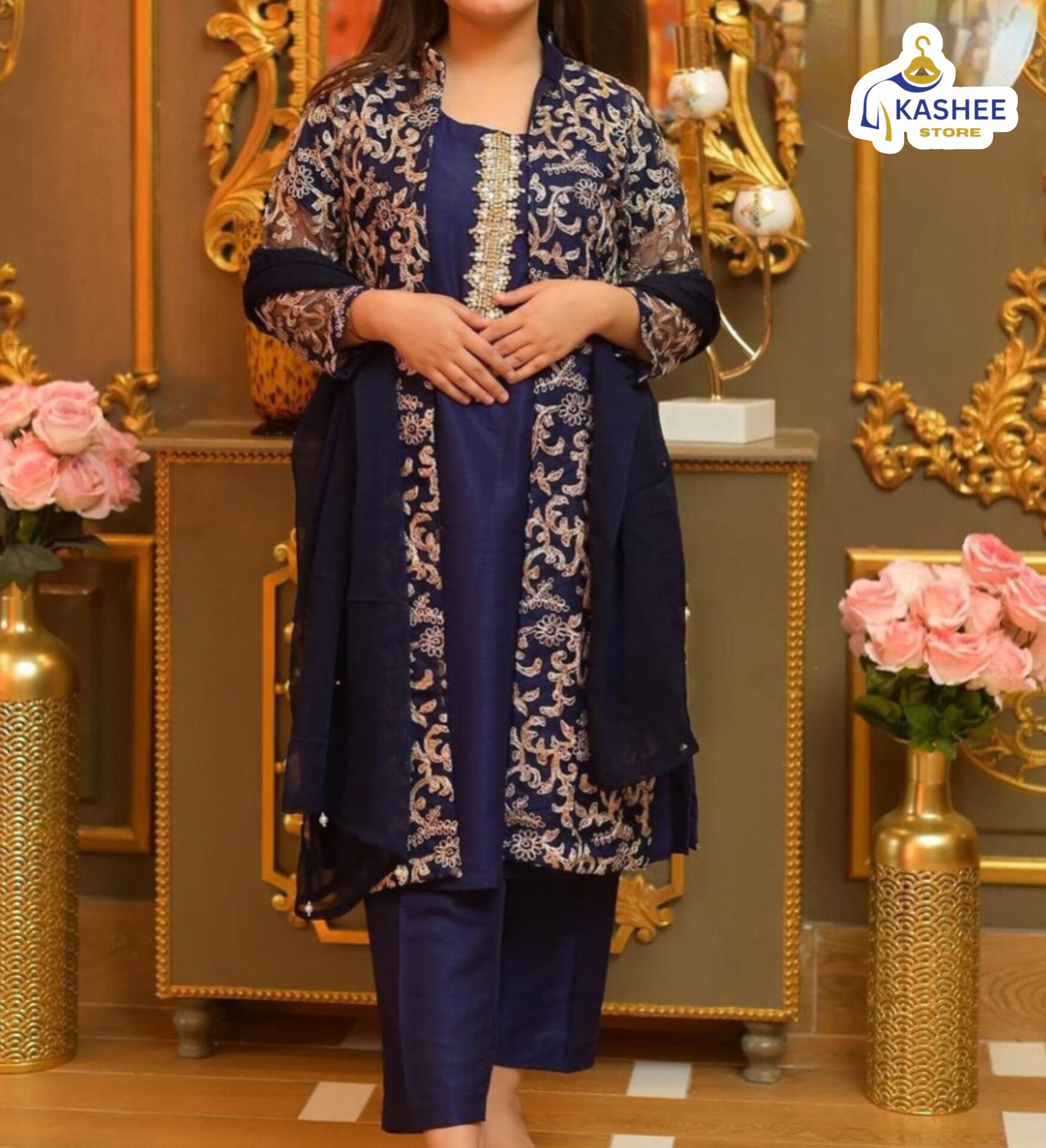 . "4Pc Embroidered Organza Gown Set | Inner, Trouser & Dupatta"