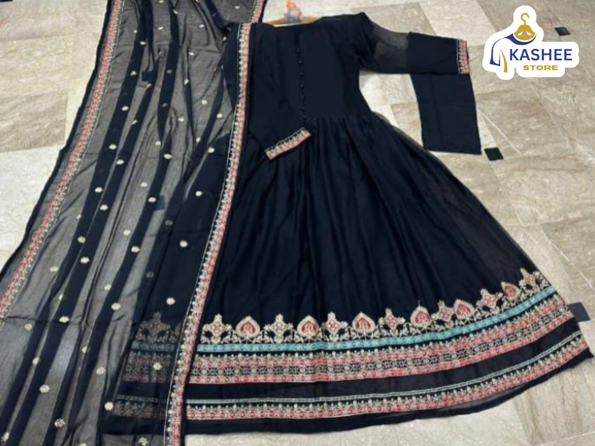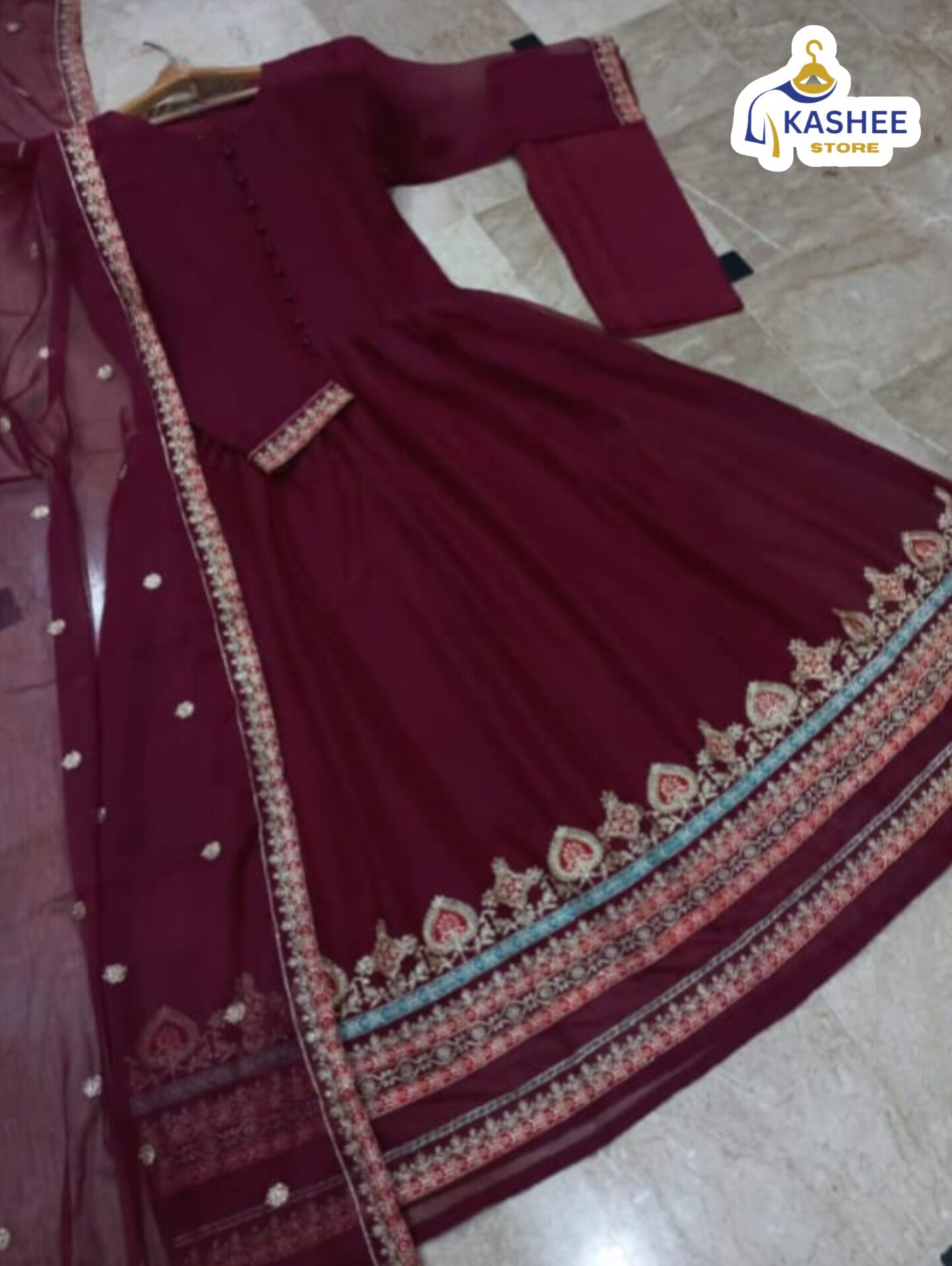 Border Embroidered Maxi & Dupatta – 3Pc Dress