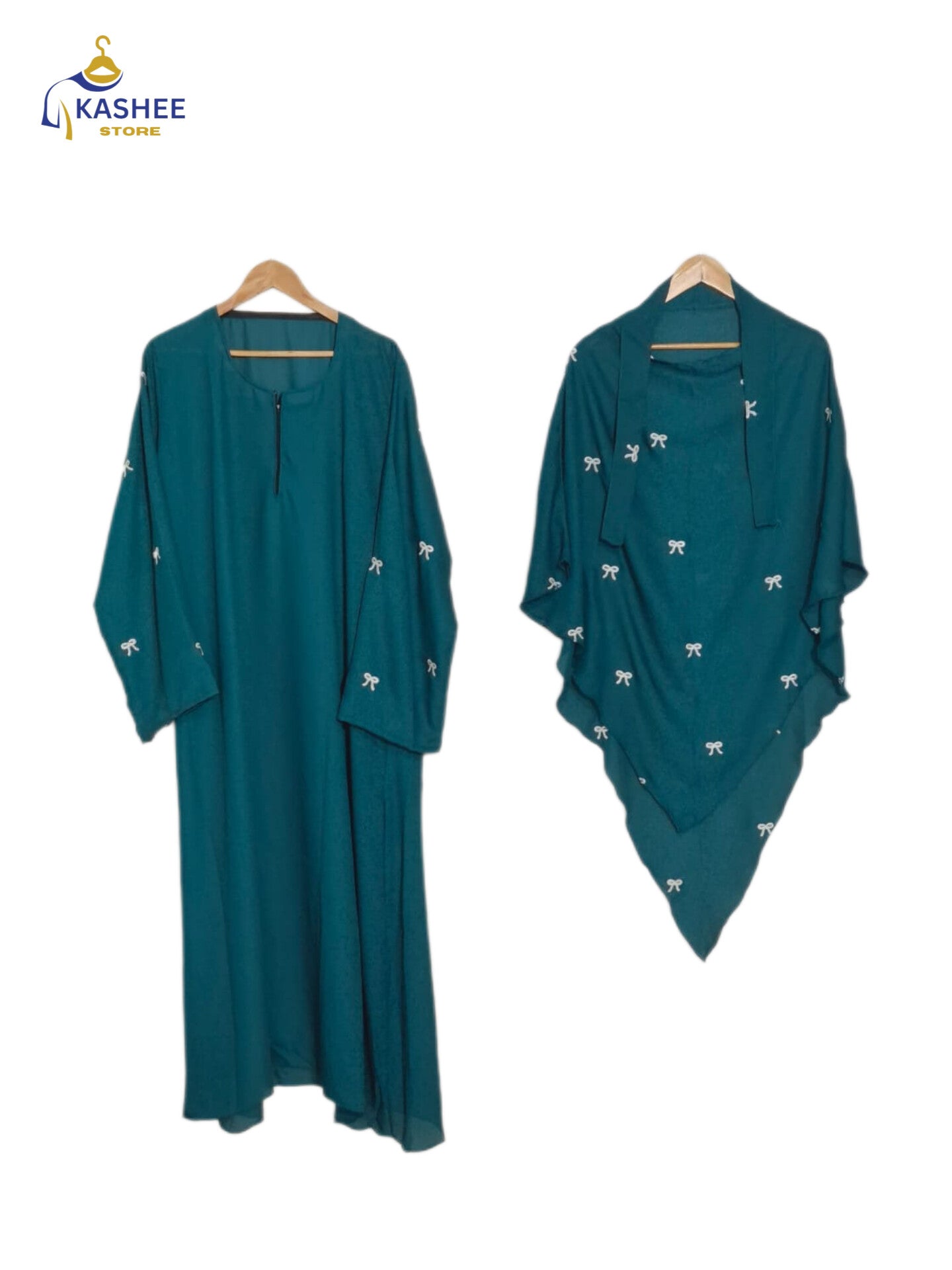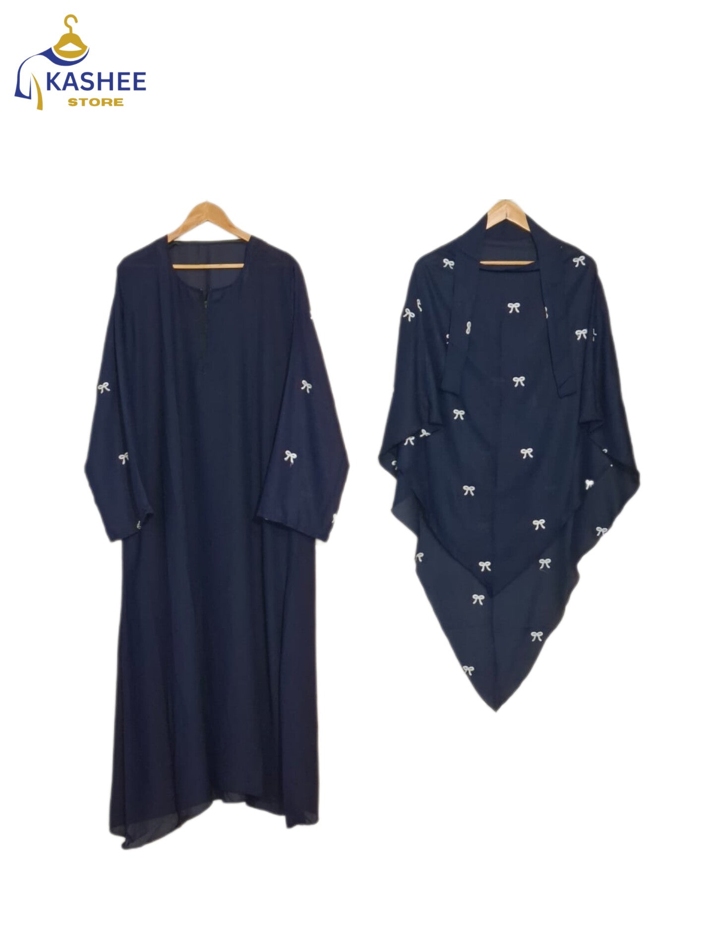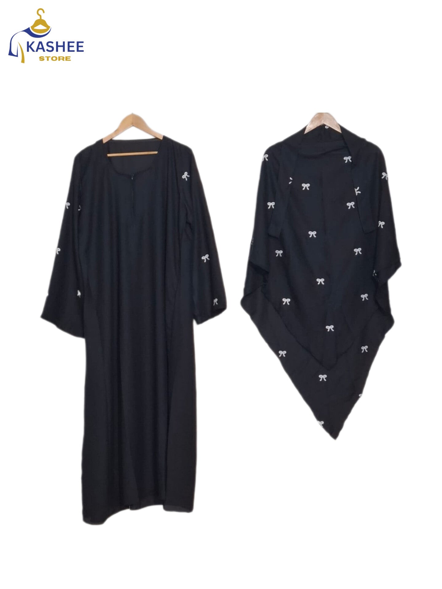 Bow Embroidered Khimar Abaya – Dual Georgette
