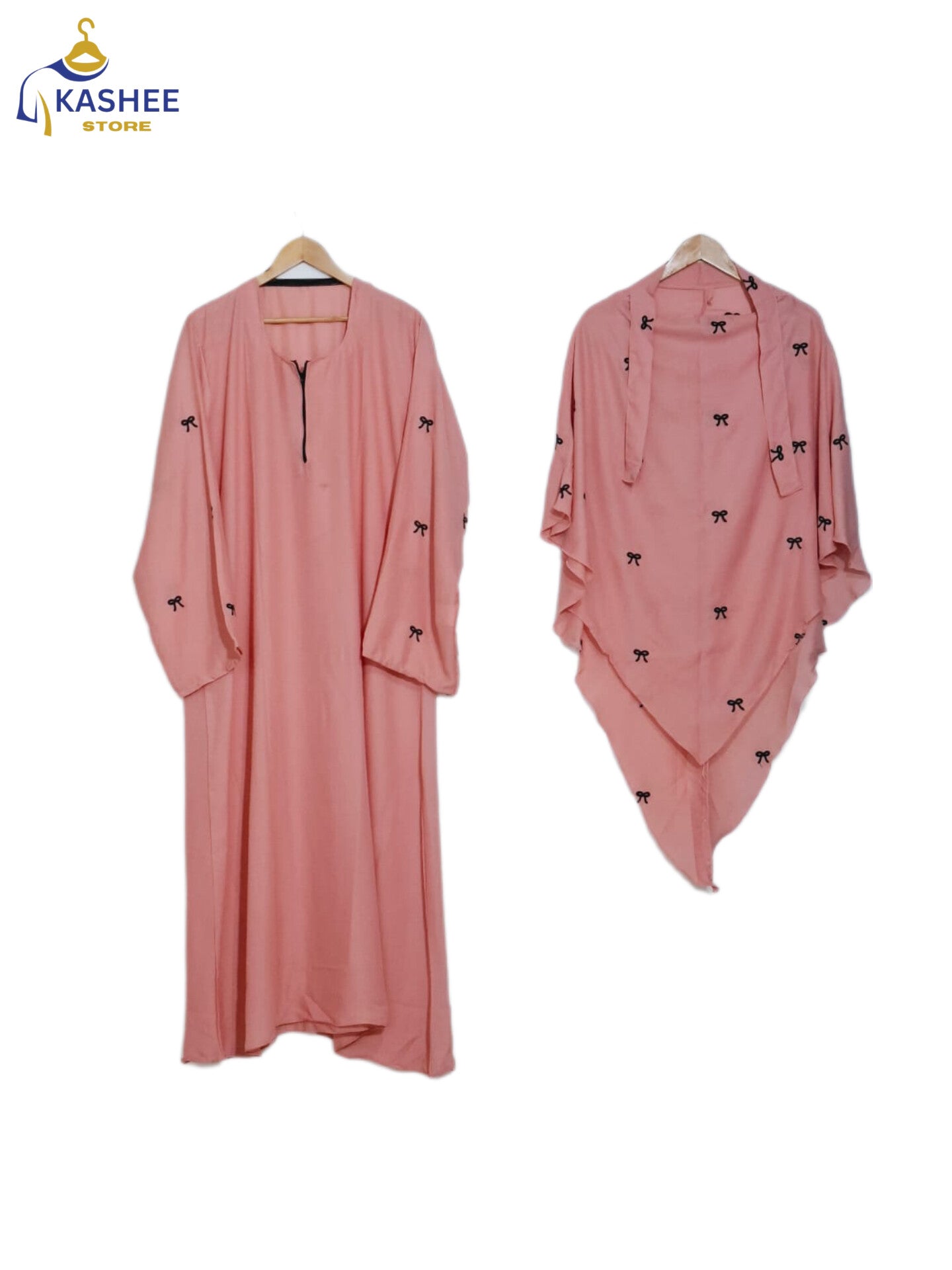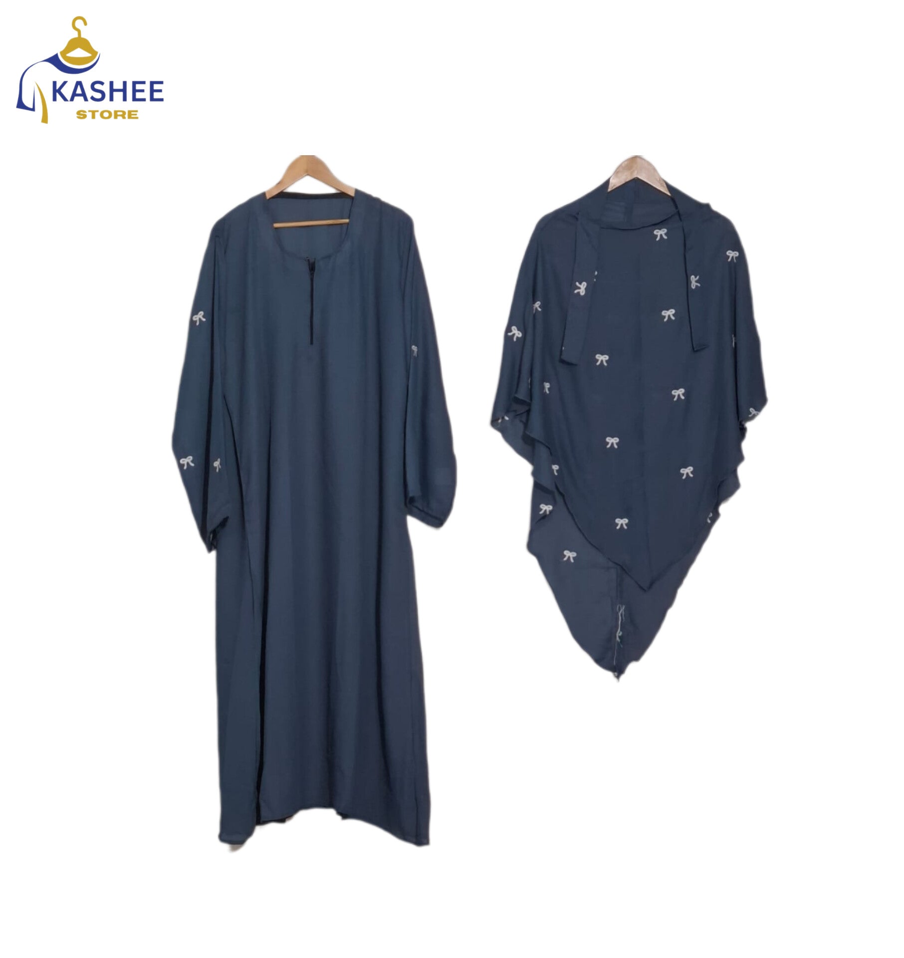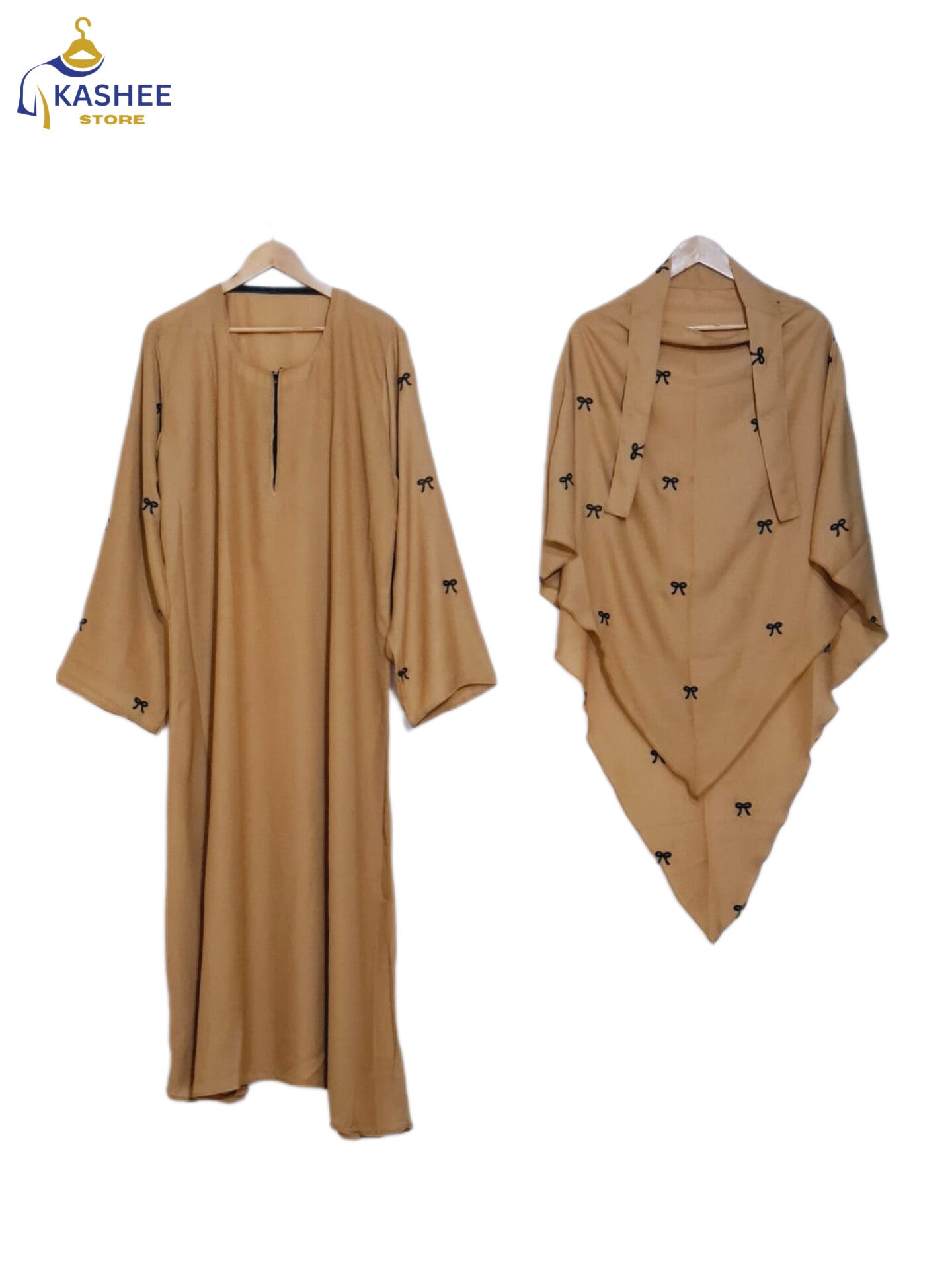 Bow Embroidered Khimar Abaya – Dual Georgette