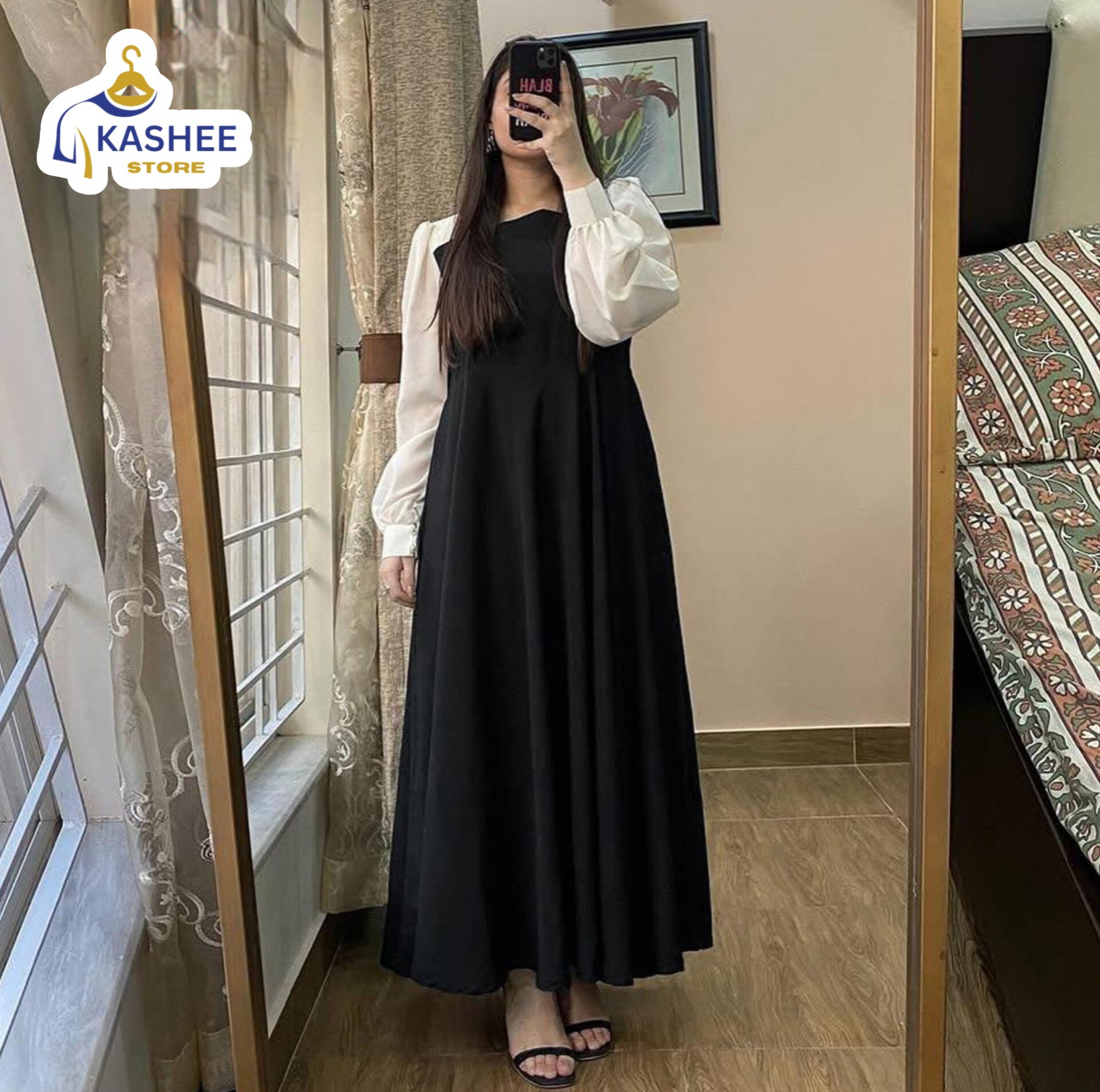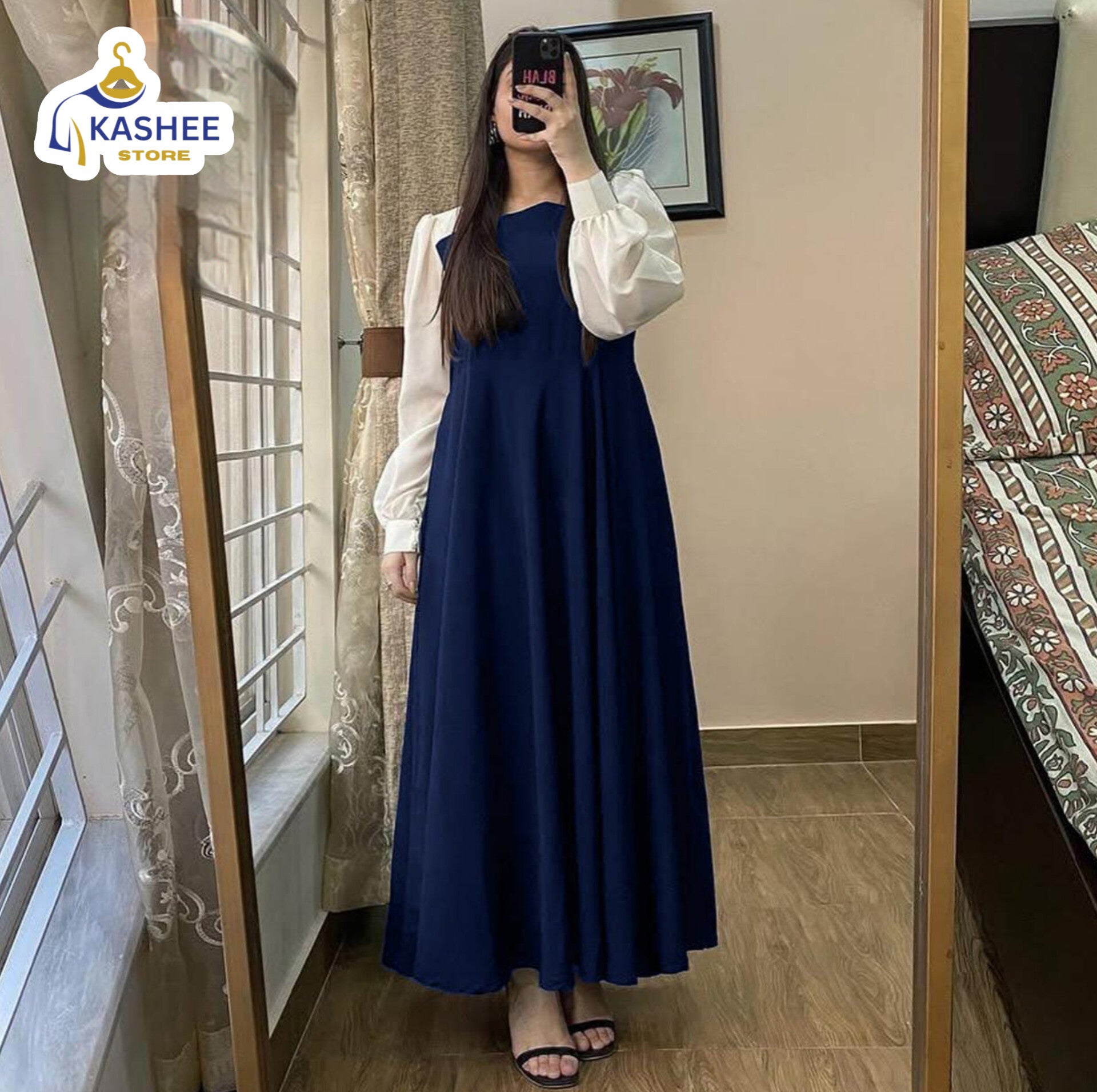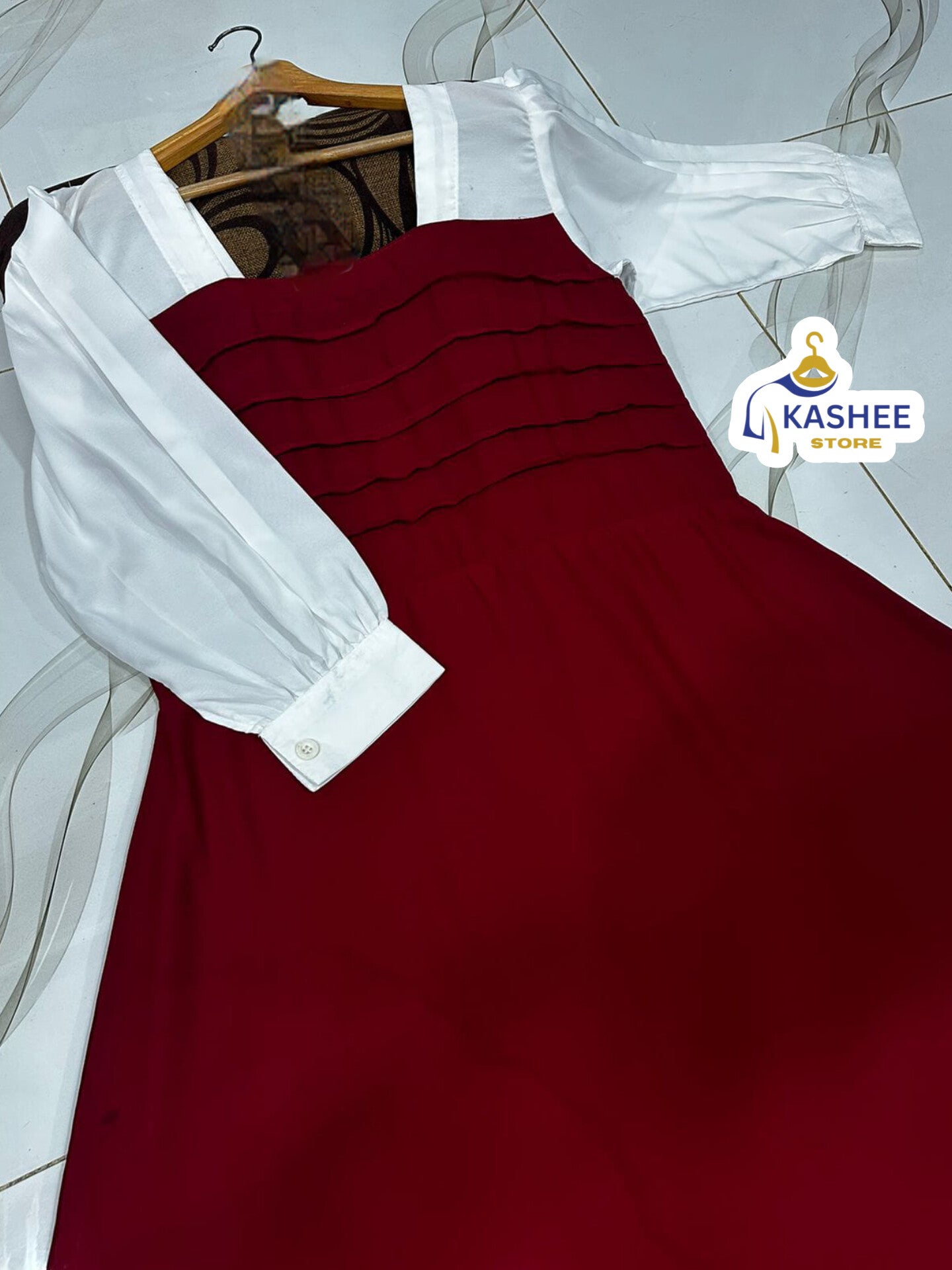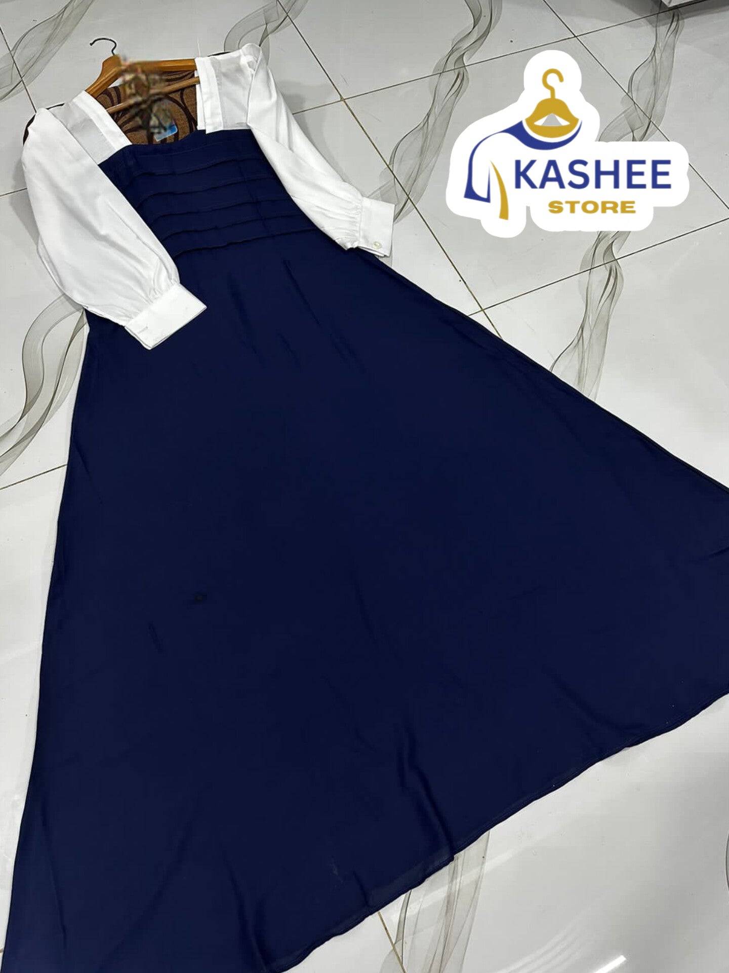 Front & Back Pleated Georgette Maxi with White Sleeves