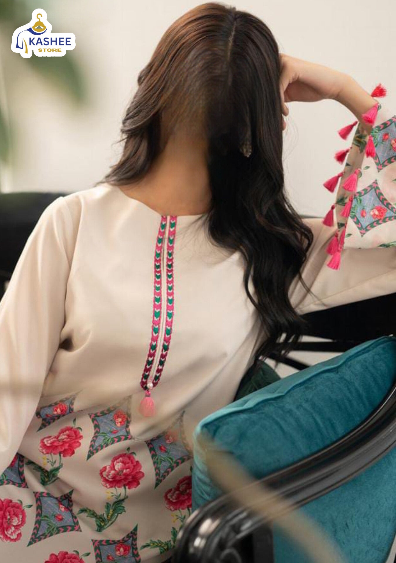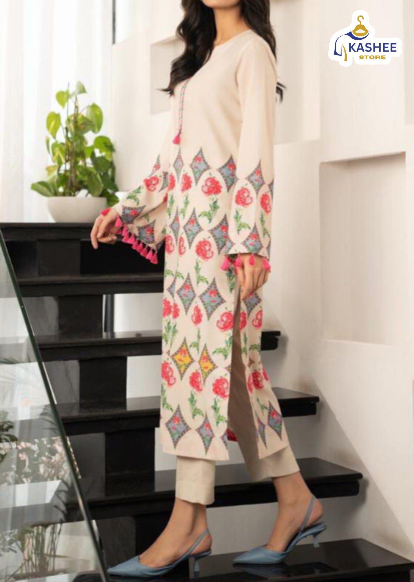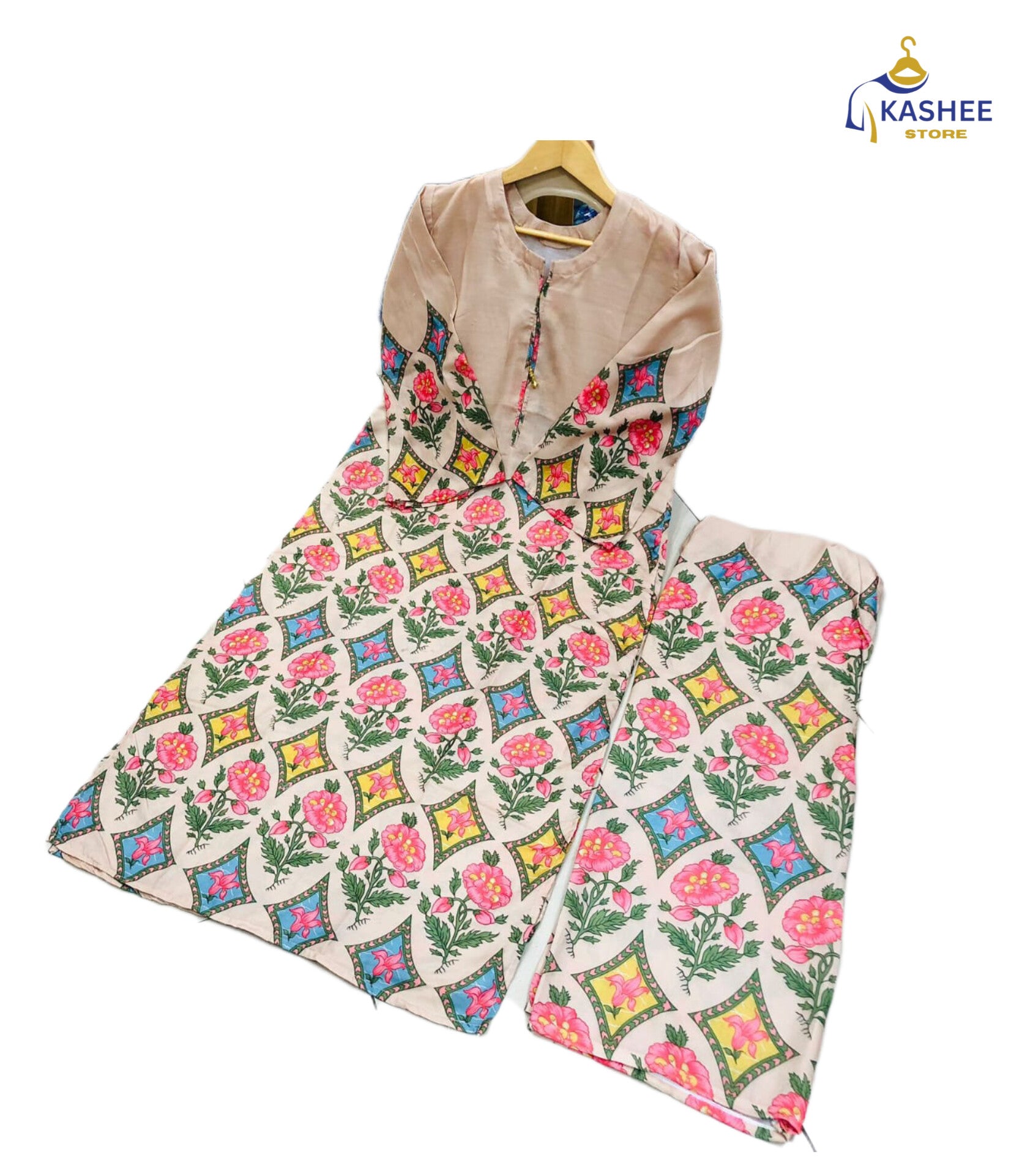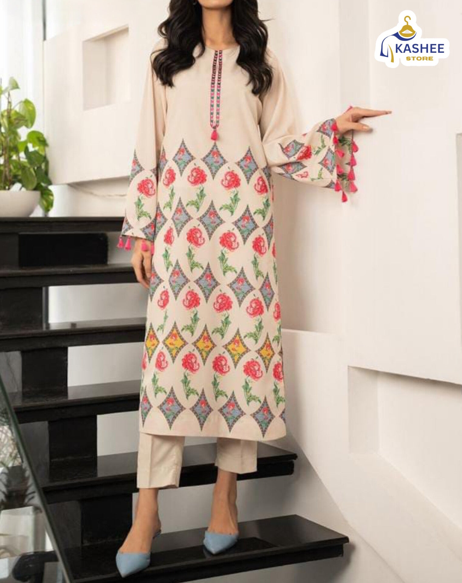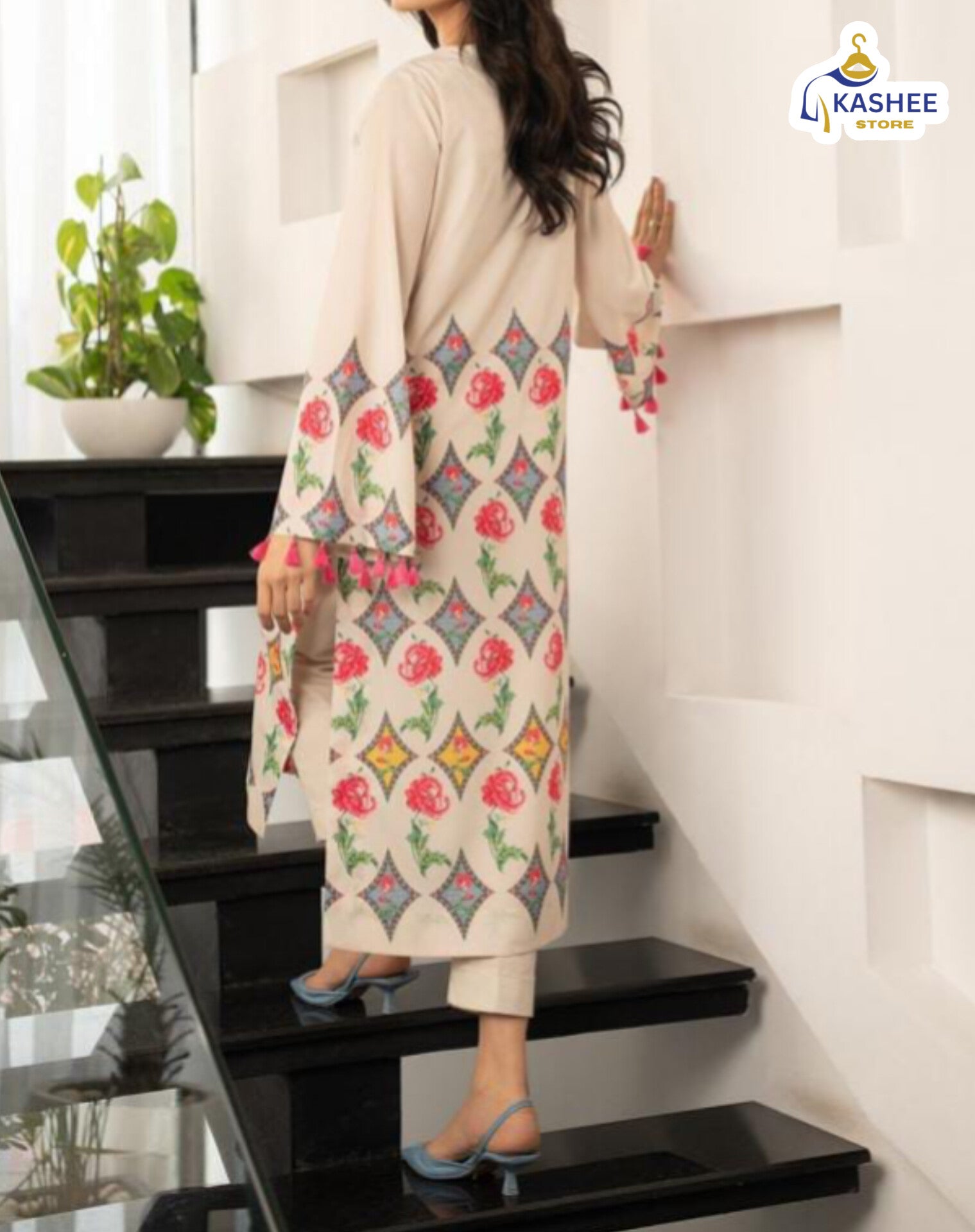 Women’s 2pc Swiss Lawn Suit – Long Digital Printed Shirt with Bell Bottom Trouser
